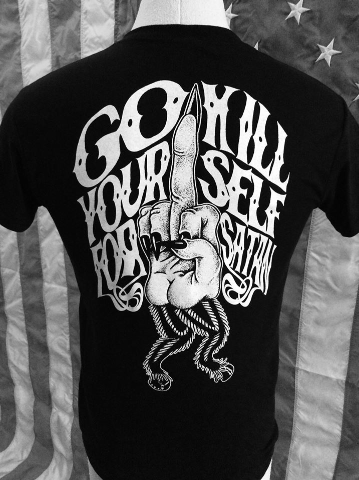 "GO KILL YOURSELF FOR SATAN" flip off black T